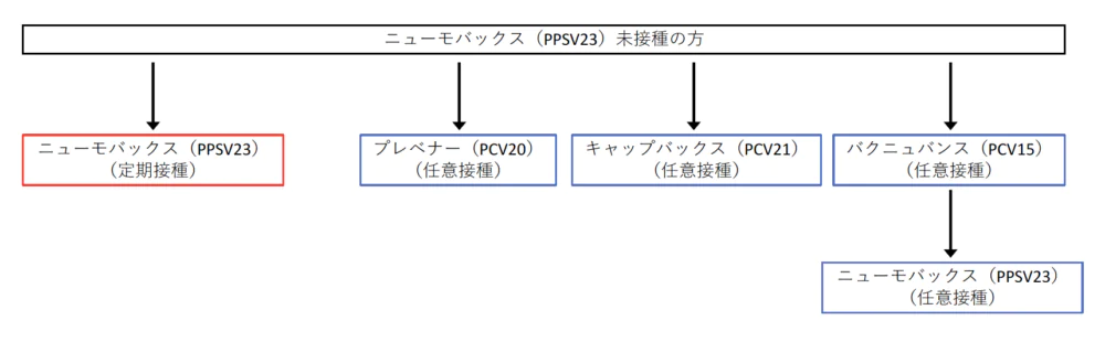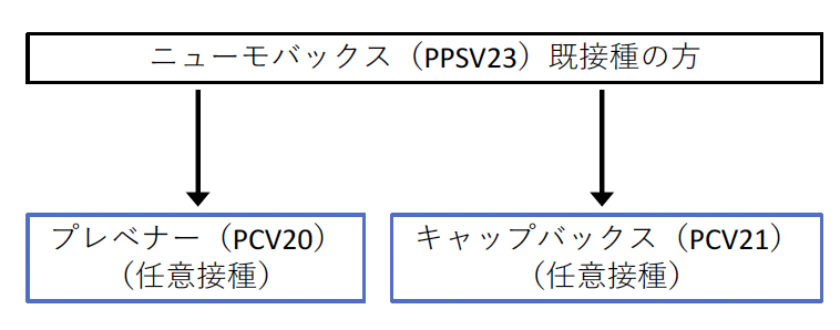 ニューモバックス(PPSV23)接種から1年以上あけて、キャップバックス(PCV21)もしくはプレベナー20(PCV20) *任意接種